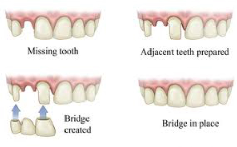 Bridge is the most common and easiest method to replace one or more missing teeth.